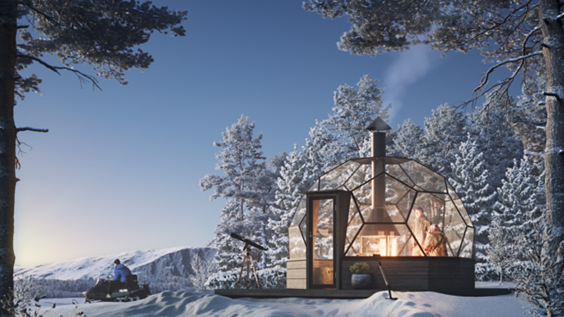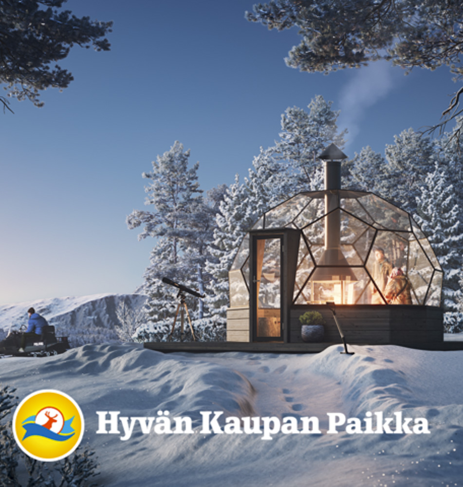 Lehtoranta Villasin hyvinvoinnin luontopolulle metsään tulossa alkukesästä upea Arctic lasi-iglu grillaukseen. Täällä istuinpaikat jopa 15 henkilölle.